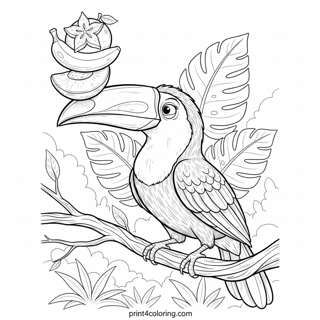 Toucan's Tropical Fruit Tower Challenge Coloring Page