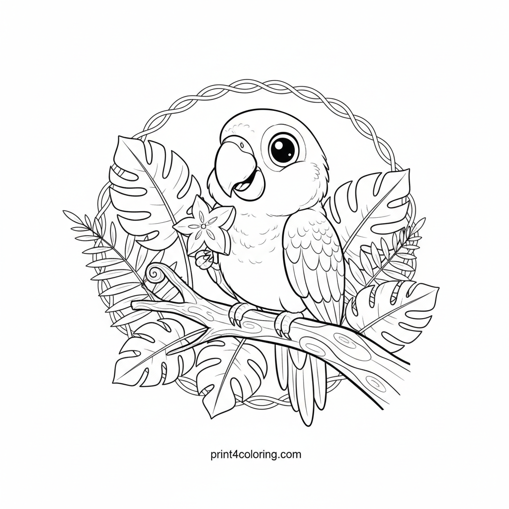 #parrot#tropical#fruit#bird#nature#still-life#amazon-parrot#animals#coloring-page#printable