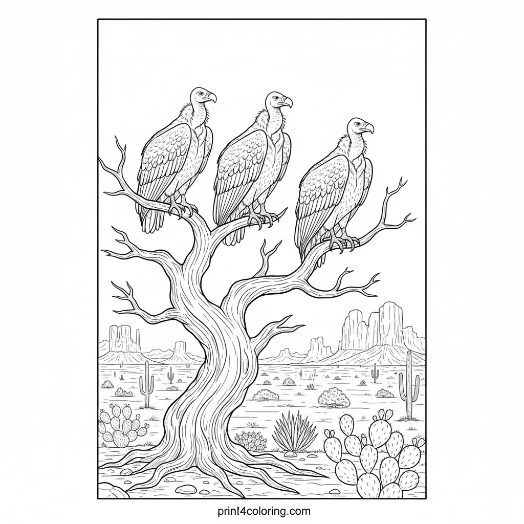 Vultures on the Watch: Desert Guardians Coloring Page