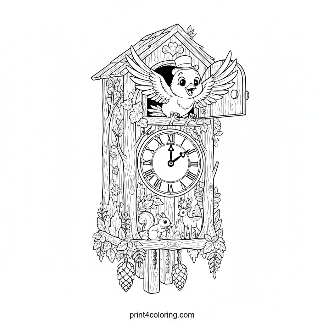 Whimsical Cuckoo Clock's Friendly Surprise Coloring Page