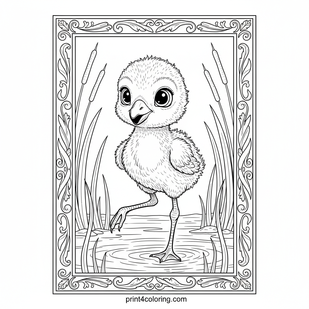 Wobbly Wonders: Baby Flamingo's First Steps Coloring Page