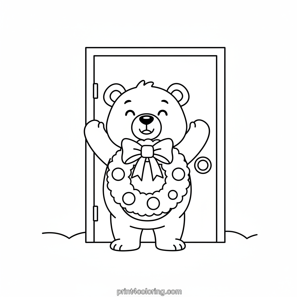 Get ready for some festive fun with our adorable Beary Merry Wreath Hanger coloring page! This cute, chubby bear is busy decorating for Christmas, stretching its paws to hang a big, beautiful wreath on a colorful door. Perfect for young children ages 3-7, this easy-to-color scene will spark holiday cheer and creativity.