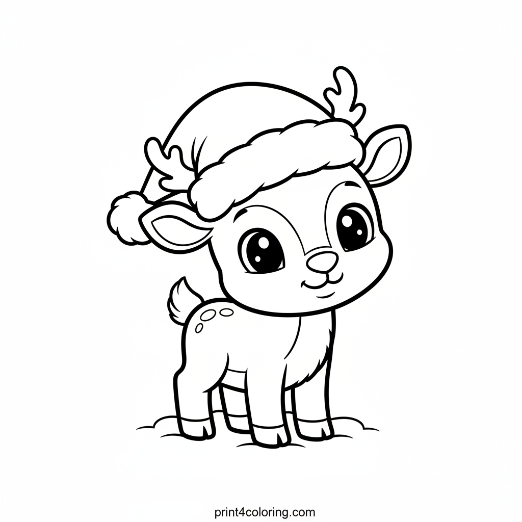 Cute Baby Reindeer's First Christmas Hat Coloring Page
