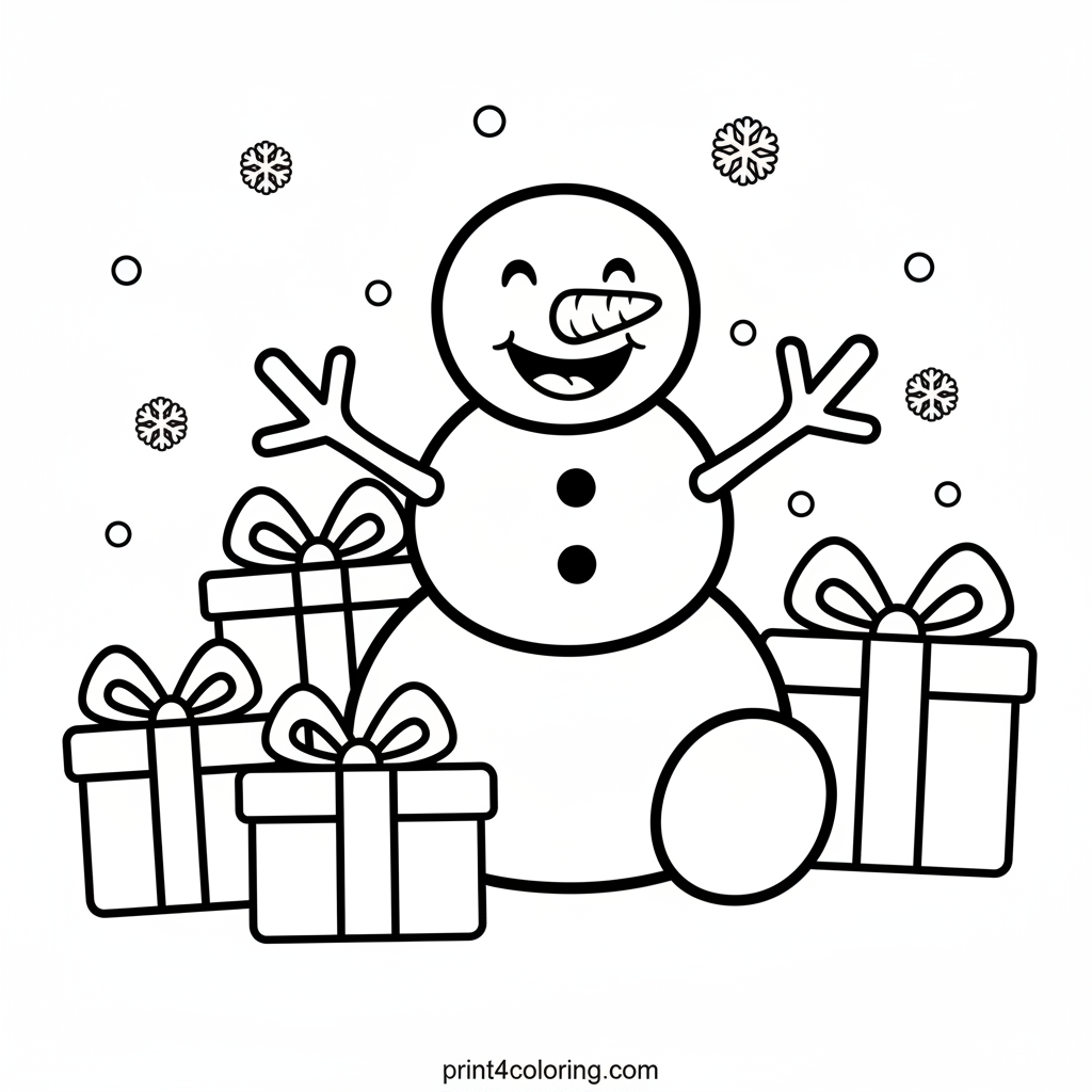 #snowman#christmas#gifts#holiday#coloring-page#printable