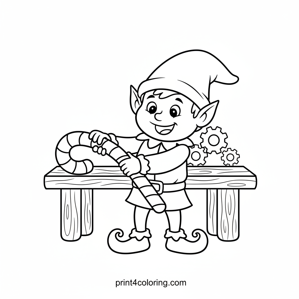 Jolly Elf's Candy Cane Workshop Coloring Page