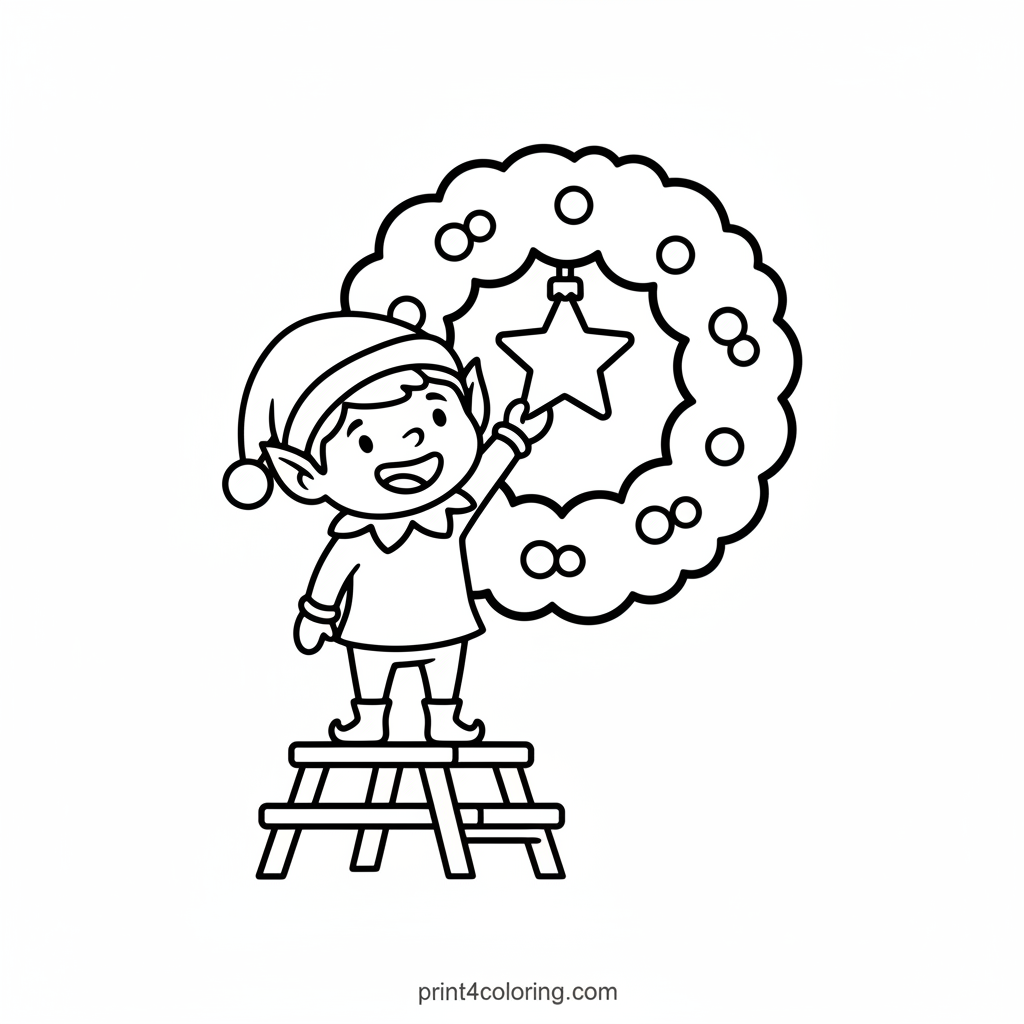 #elf#christmas#holiday#wreath#star#ornament#festive#easy#coloring-page#printable