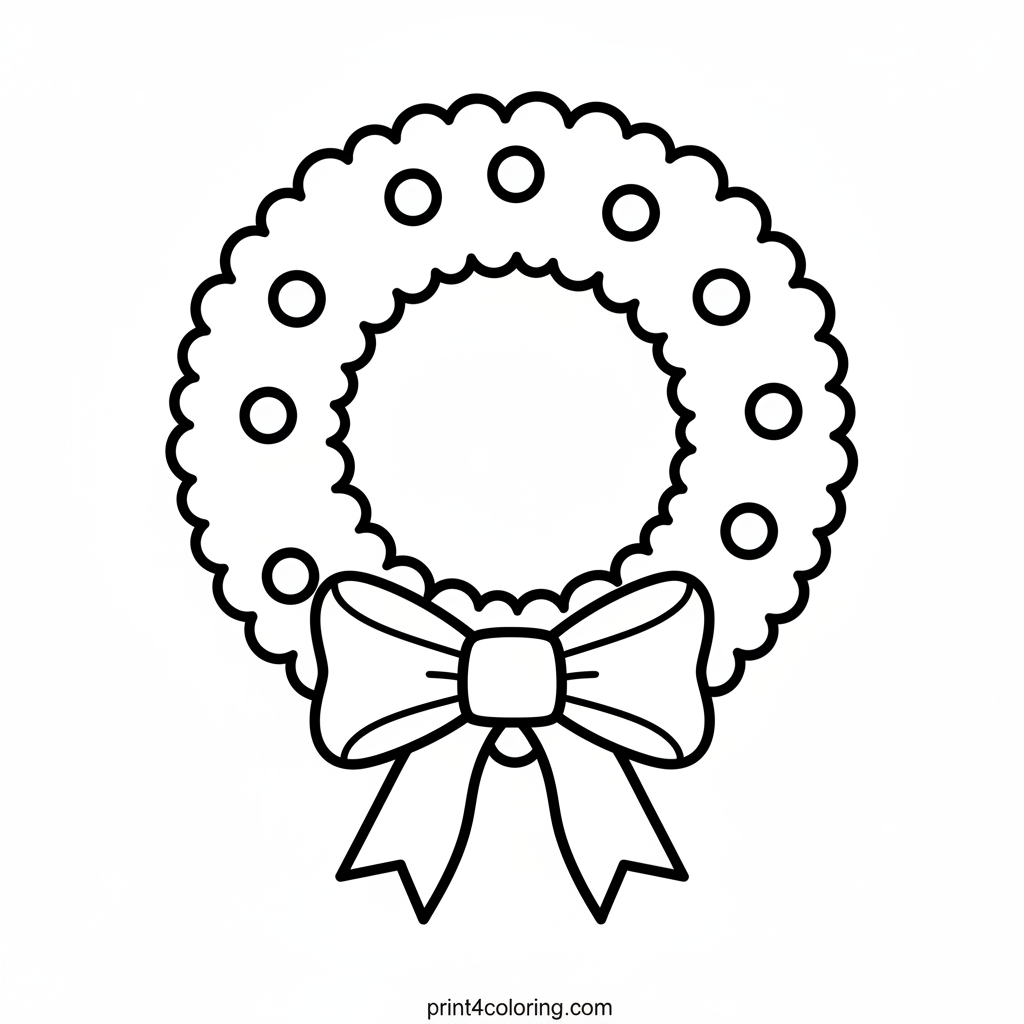Spread holiday cheer with this delightful Christmas wreath coloring page! Featuring a simple, classic wreath adorned with a huge, floppy, friendly-looking red bow, it's perfect for young children ages 3-7. Little hands will love bringing this festive scene to life with their favorite colors, making it a wonderful activity.