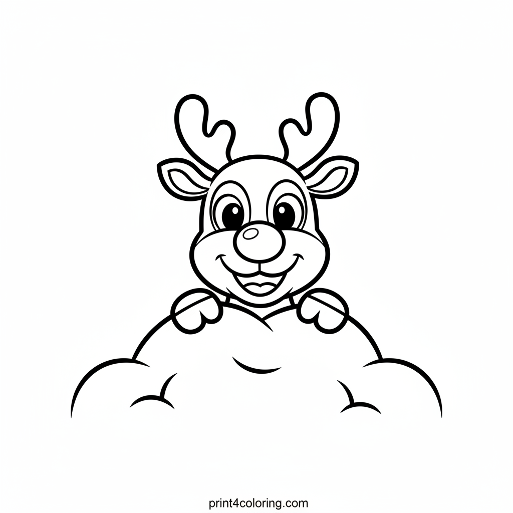 Join Rudolph in a playful game of hide-and-seek! His bright red nose peeks from a fluffy snowdrift, ready for little hands to color. This charming scene is perfect for young children ages 3-7 to enjoy a festive coloring adventure, bringing holiday cheer to life.