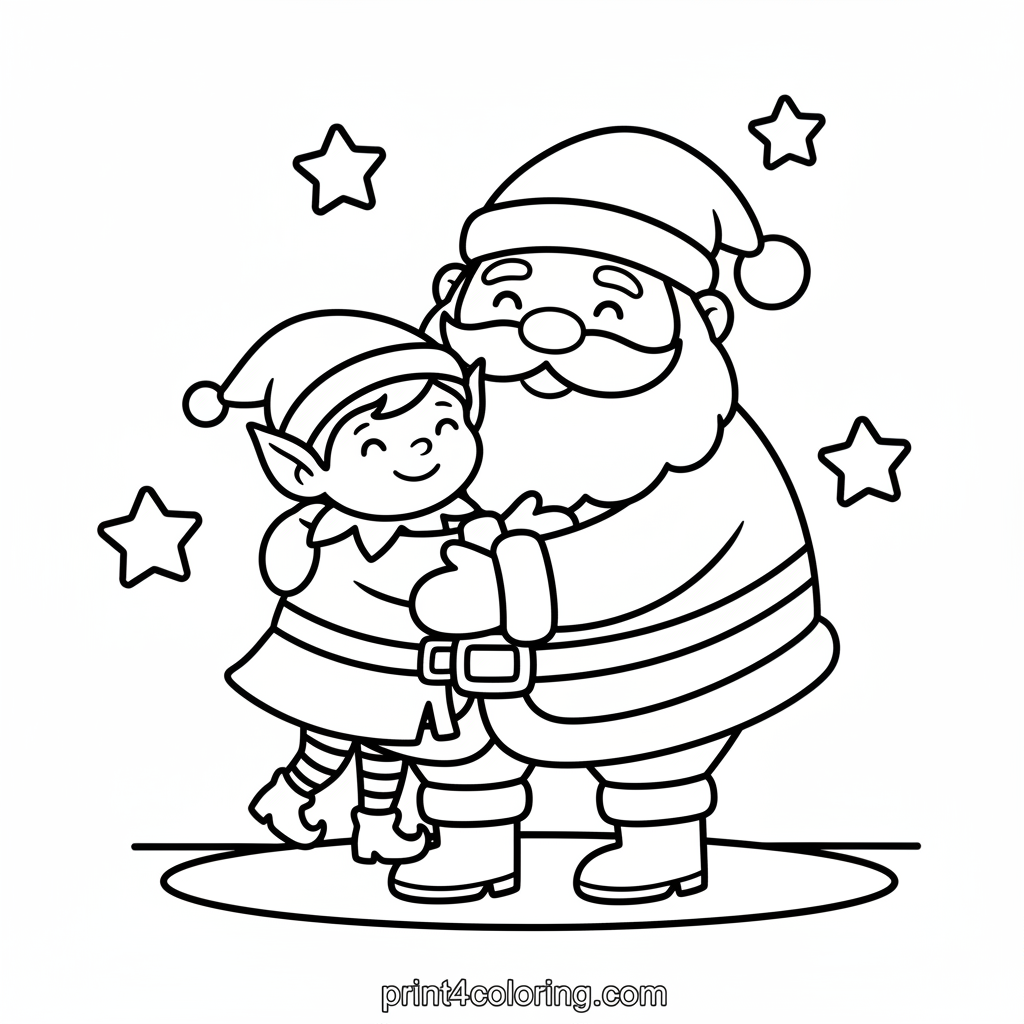 Santa's Cozy Hug with a Happy Elf Coloring Page