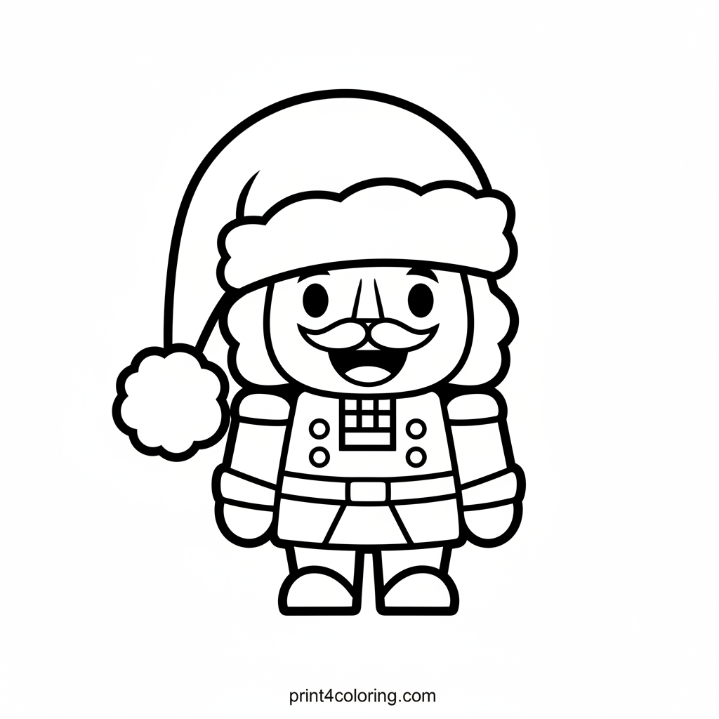 Get ready to color a super happy nutcracker! This friendly fellow is wearing a big, floppy Santa hat that's making him giggle with delight. Imagine all the bright colors you can use for his uniform and that wonderfully silly hat! Perfect for young children ages 3-7 to spark creativity and joy.