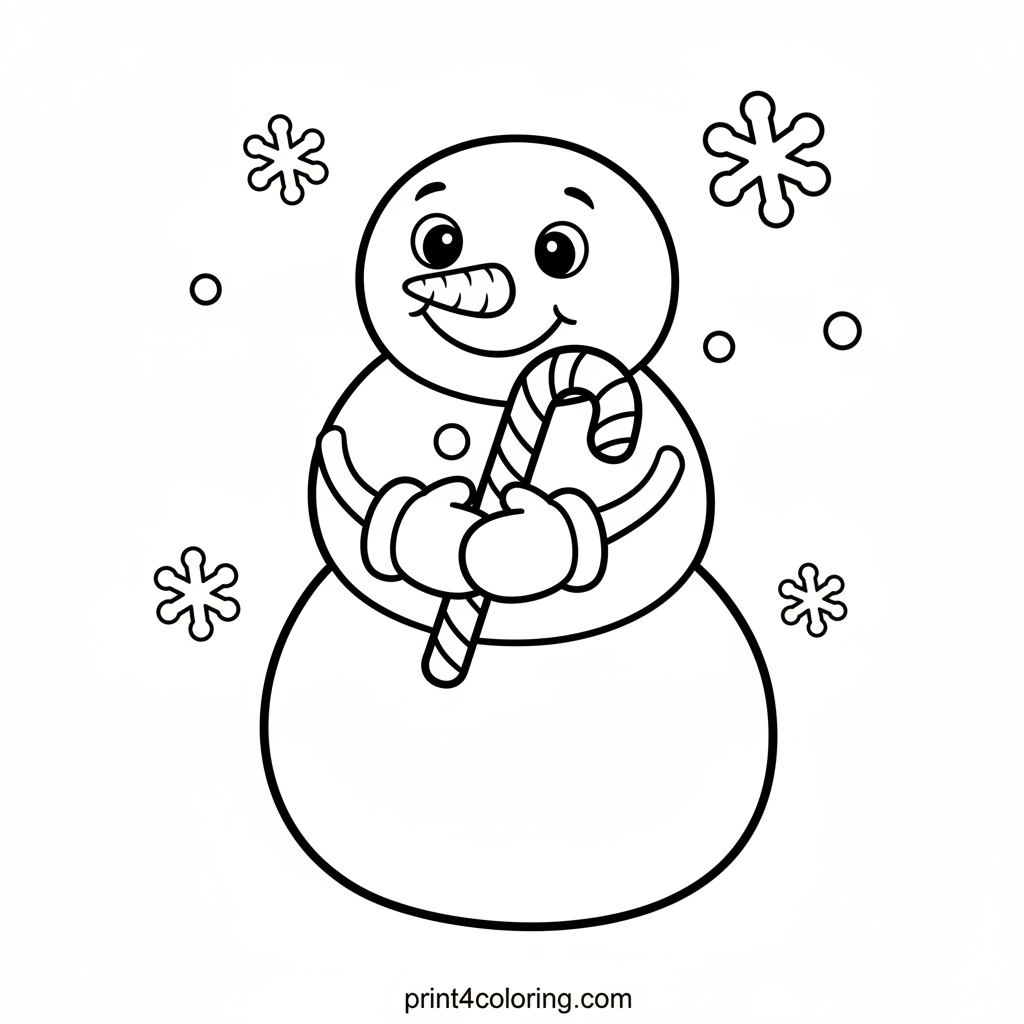 Snowman's Sweet Candy Cane Surprise! Coloring Page