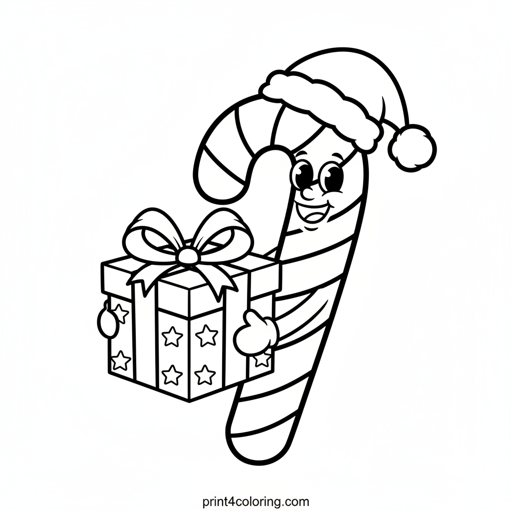 Sweet Gift from a Friendly Candy Cane! Coloring Page