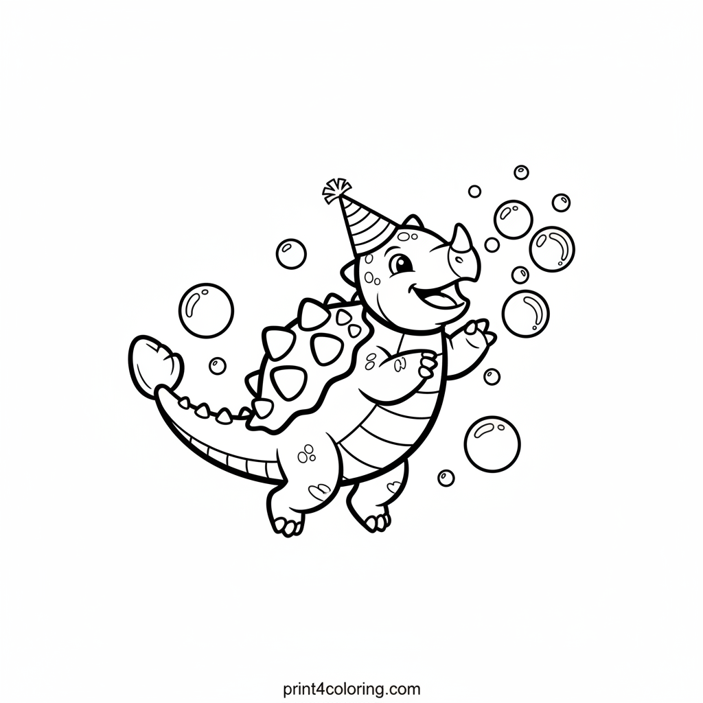 Ankylosaurus's Bubbly Bash! Coloring Page