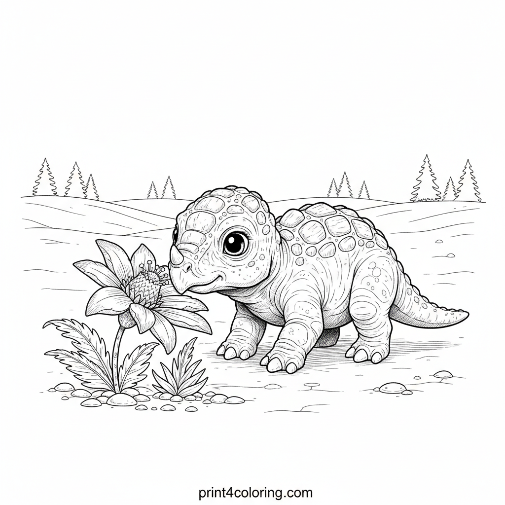Baby Ankylosaurus's First Prehistoric Bloom Coloring Page