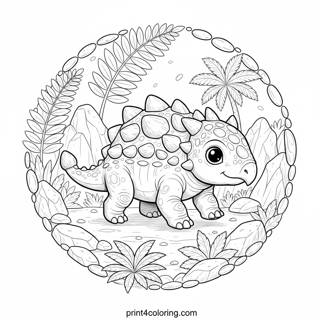 Cozy Ankylosaurus Trek: Armored Giant Explores Coloring Page