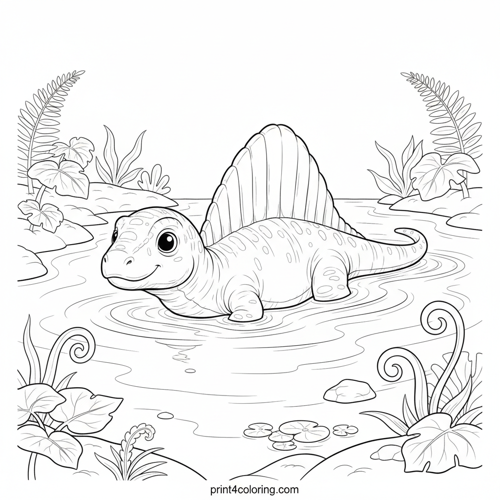 Dive into a prehistoric adventure with our friendly Spinosaurus! Watch its magnificent sail glide across a serene ancient river, surrounded by lush aquatic plants and towering ferns. You can even spot its powerful tail moving gently beneath the water. A perfect scene for expert colorists to bring this ancient world to life!
