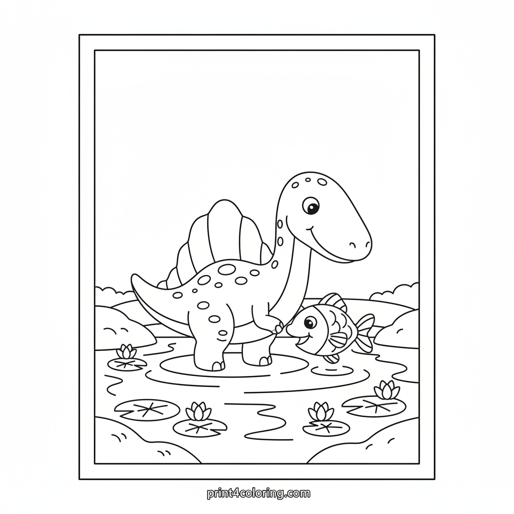Friendly Spino's River Fishing Adventure Coloring Page