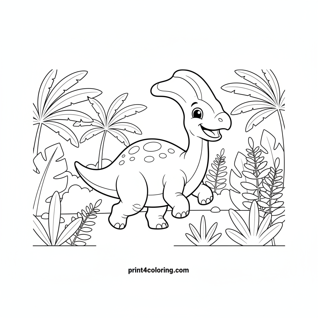 Joyful Jungle Prance: A Parasaurolophus Adventure Coloring Page