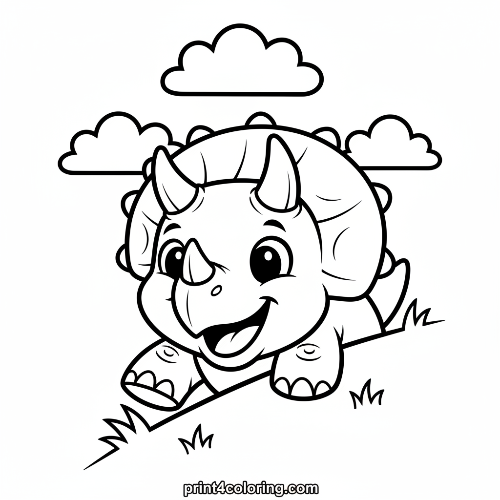 #triceratops#dinosaur#rolling#playful#prehistoric#grass#clouds#animals#coloring-page#printable