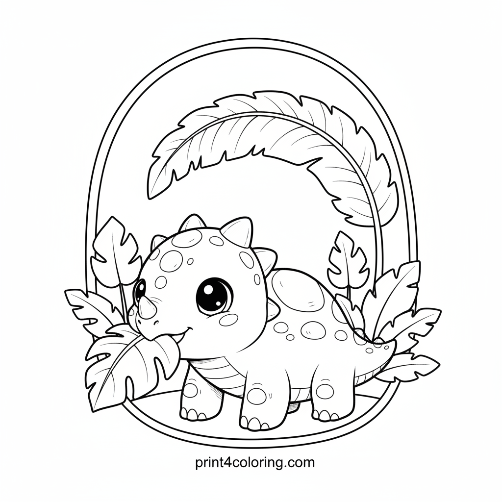 Join an adorable baby Ankylosaurus as it enjoys a yummy leaf snack! With big, friendly eyes and a cozy, bumpy back, this little dinosaur is surrounded by lush jungle plants. Grab your crayons and bring this prehistoric munching scene to life with vibrant greens and earthy tones. A delightful adventure for young artists!