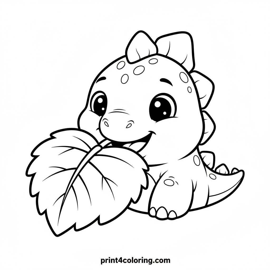 #baby stegosaurus#dinosaur#cute#leaf#snack#prehistoric#animal#coloring-page#printable