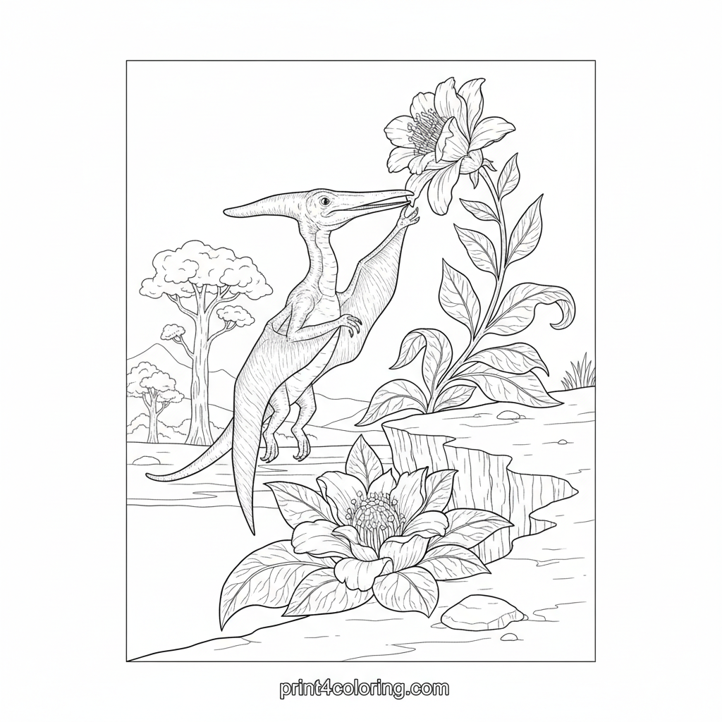 Pterodactyl's Ancient Bloom Harvest Coloring Page