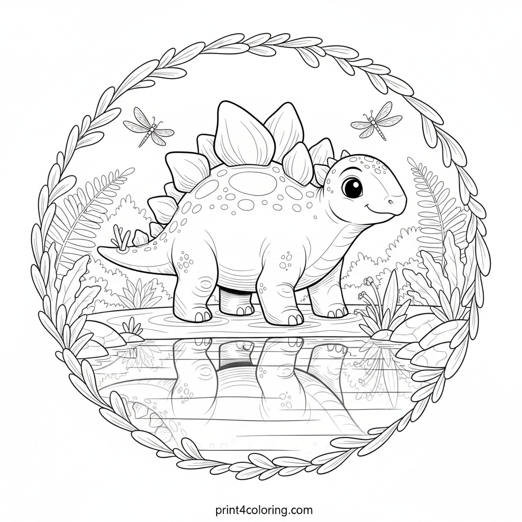 Serene Twilight Stegosaurus Watering Hole Coloring Page