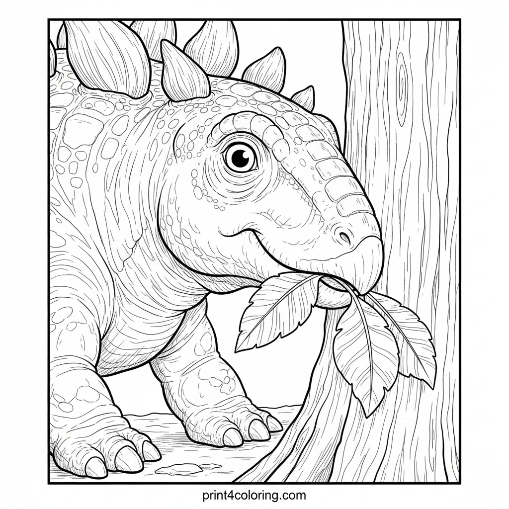 Stegosaurus's Leafy Lunch: A Prehistoric Feast Coloring Page