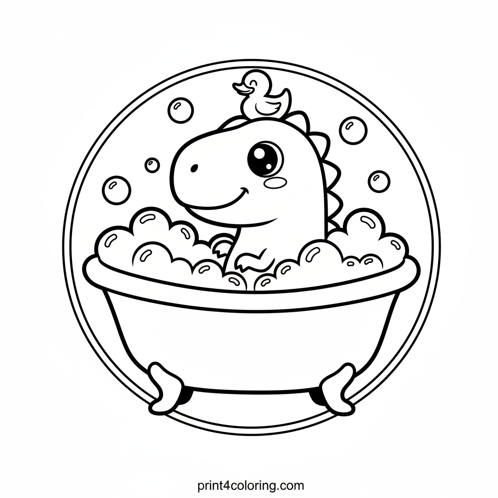 Get ready for a splashy adventure! Our super friendly T-Rex is having the best time in a giant, claw-footed tub, surrounded by mountains of bubbly fun. A happy little rubber ducky is balancing right on its head! Grab your colors and bring this adorable prehistoric bath scene to life.