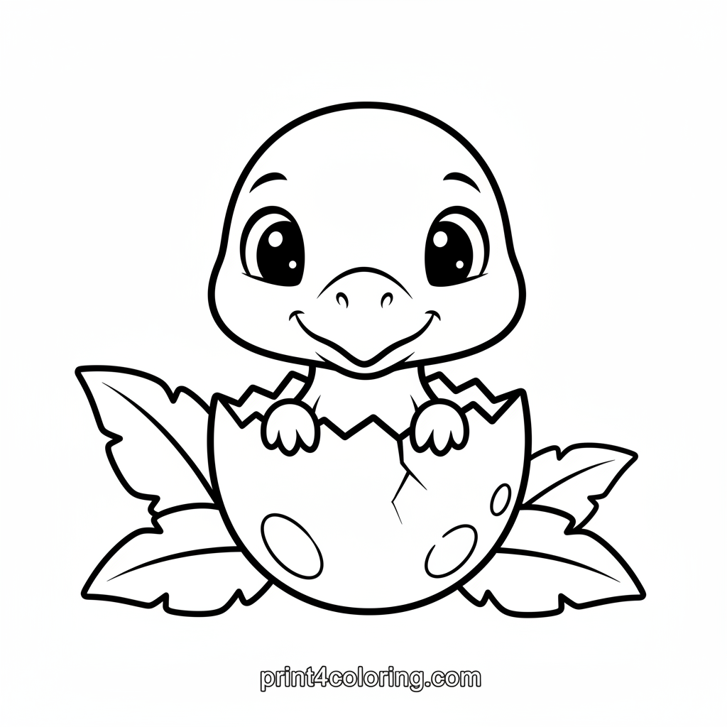 Discover an adorable baby pterodactyl hatchling, peeking out of its cracked eggshell! With big, curious eyes, this tiny prehistoric friend is ready to explore. Large, friendly leaves cradle the scene, making it a perfectly cozy welcome to the world. Get ready to add vibrant colors to this charming dinosaur portrait!