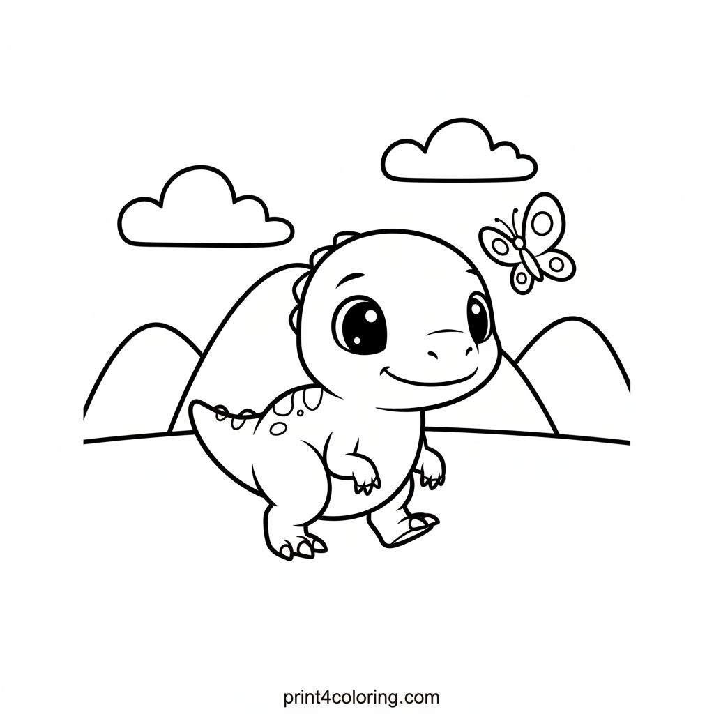 Meet an adorable baby velociraptor hatchling taking its very first wobbly steps in a bright, sunny field! With big, curious eyes, this little dino explores a new world. A friendly butterfly flutters nearby, adding to the magic. Bring this heartwarming prehistoric adventure to life with your favorite colors!