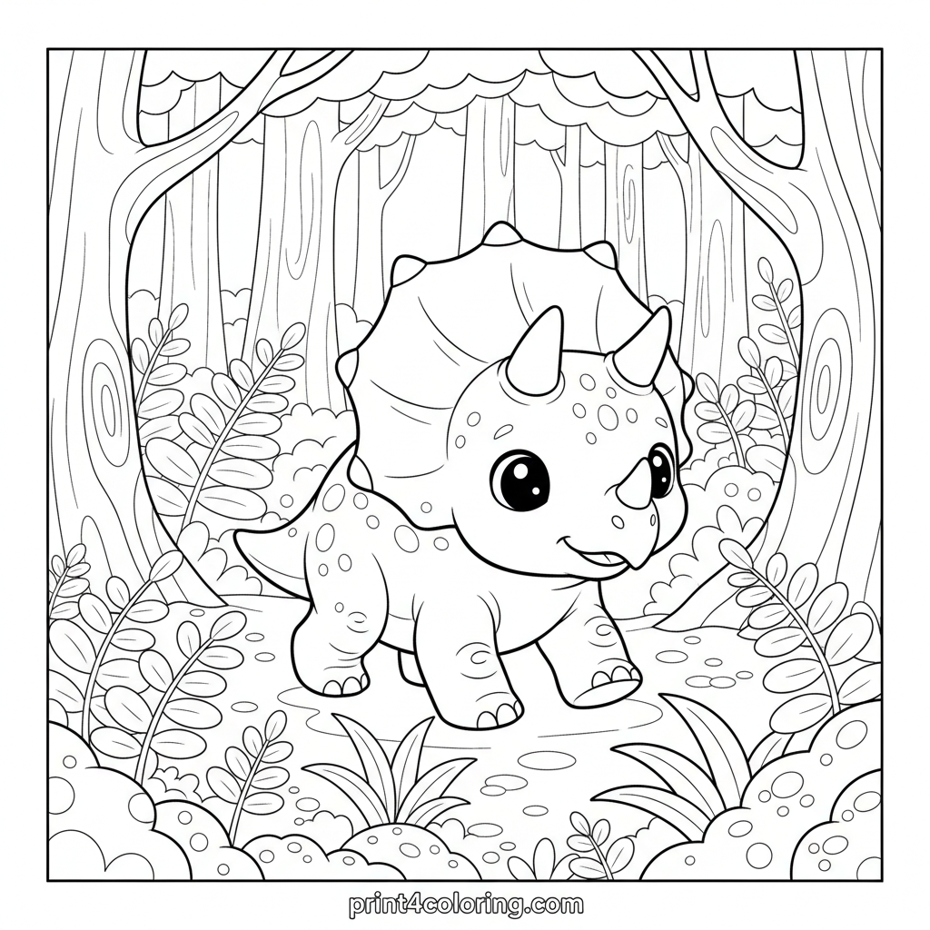 #triceratops#dinosaur#prehistoric#forest#woodlands#ancient#nature#cute#cozy#journey#coloring-page#printable