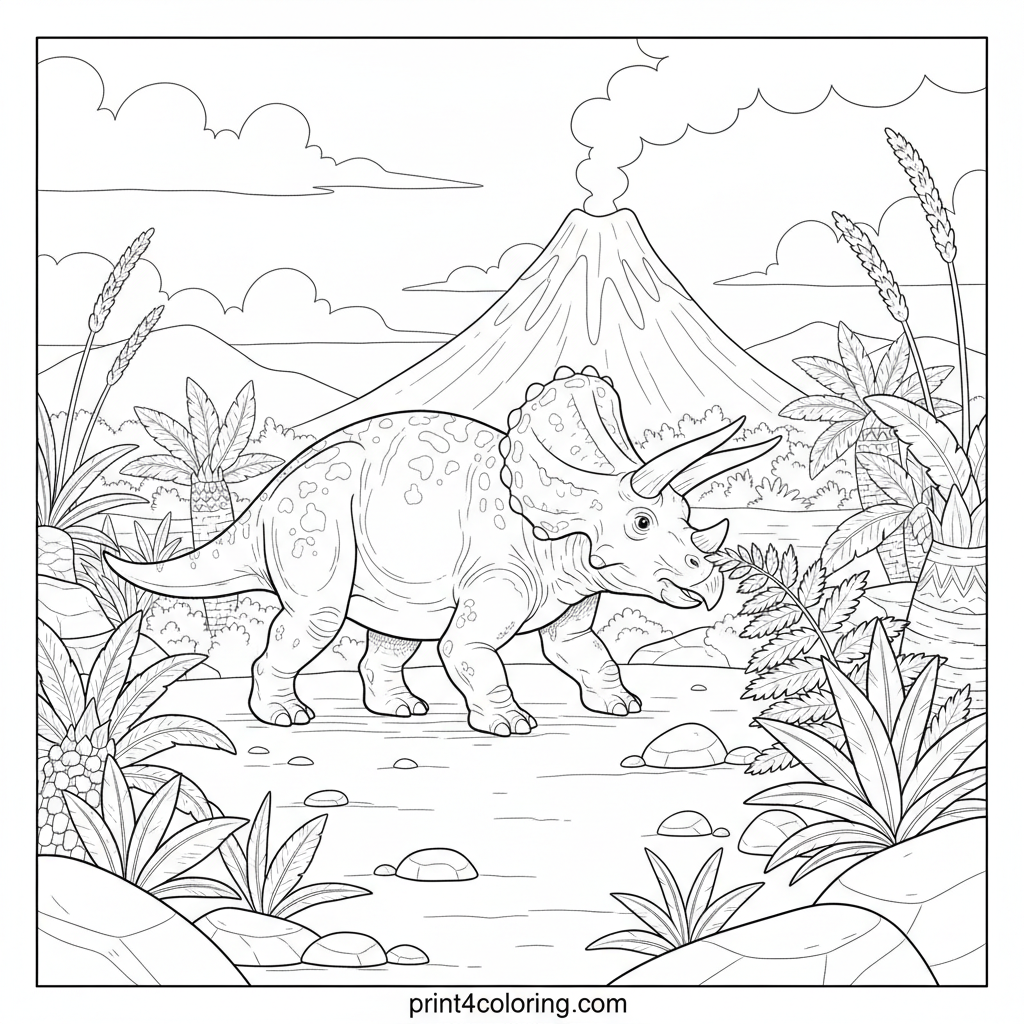 #triceratops#dinosaur#volcano#prehistoric#grazing#ancient-plants#nature#coloring-page#printable