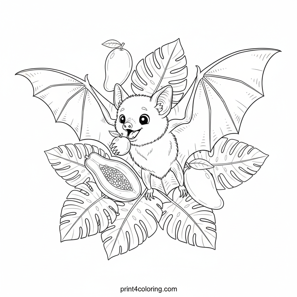 Berry Bliss: Friendly Fruit Bat's Feast Coloring Page