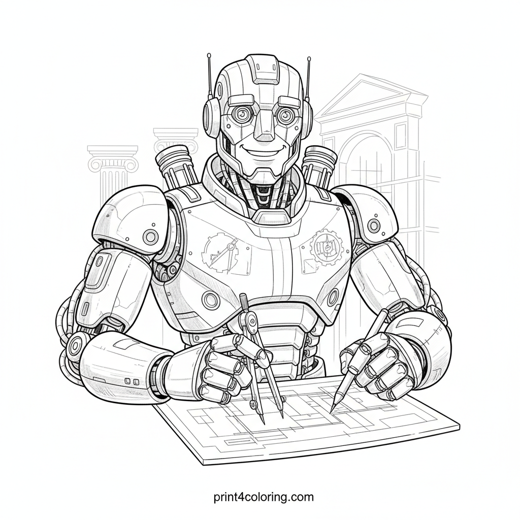 Future Foundations: Robotic Architect Coloring Page
