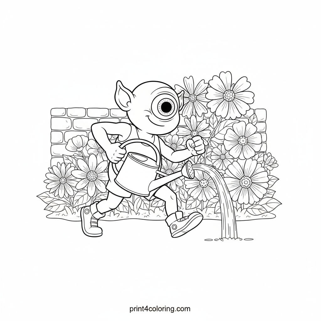The Gentle Gardener Cyclops: Watering Wonders Coloring Page