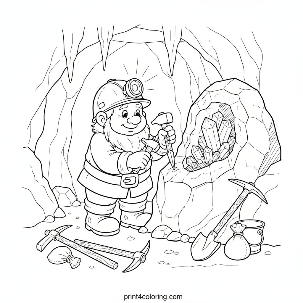 #gnome#geode#crystals#mining#cave#fantasy#discovery#treasure#coloring-page#printable