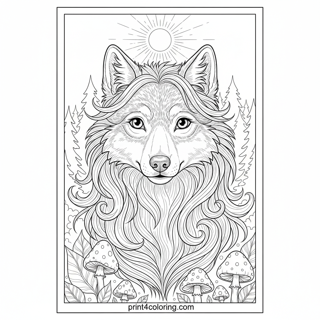 #wolf#fantasy#moonlight#forest#nocturnal#detailed#magical#mushrooms#nature#coloring-page#printable