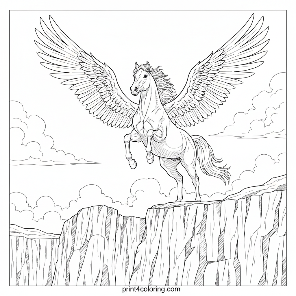 Mythic Flight: Pegasus Over Ancient Cliffs Coloring Page
