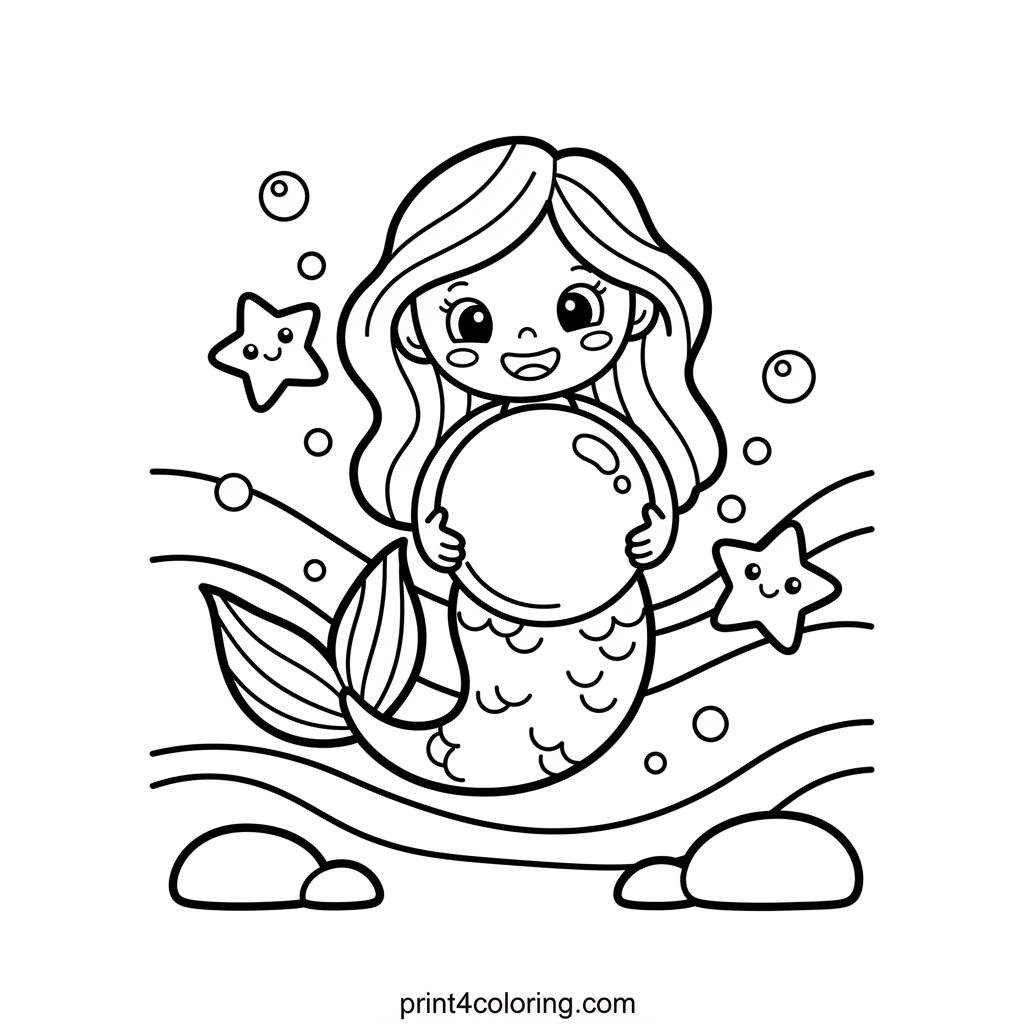 Dive into an enchanting underwater world with our sweet mermaid! She's holding a magical, glowing pearl that lights up the ocean, attracting friendly star-shaped sea creatures. This delightful scene is perfect for young children ages 3-7 to explore their creativity and bring vibrant colors to life.