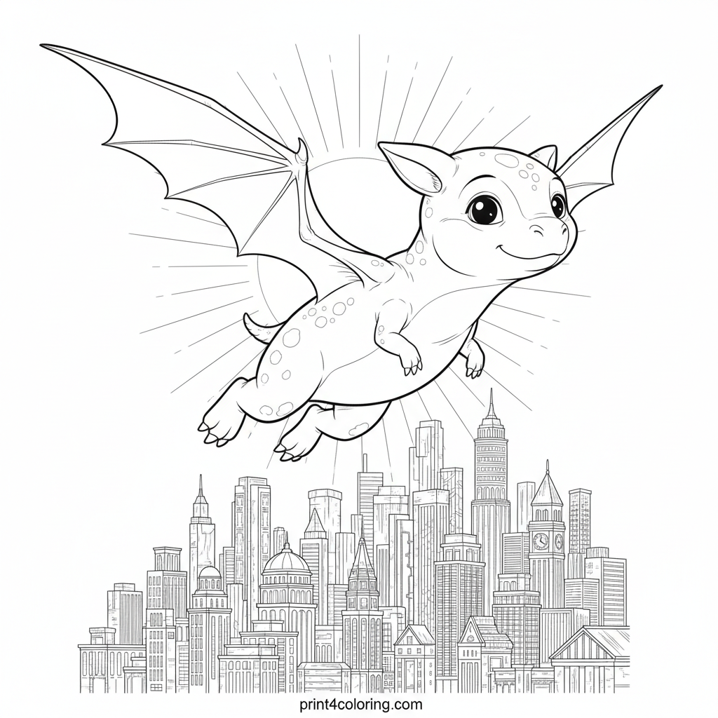 #dinosaur#city#sunrise#giant-creature#skyline#architecture#fantasy#expert-level#coloring-page#printable