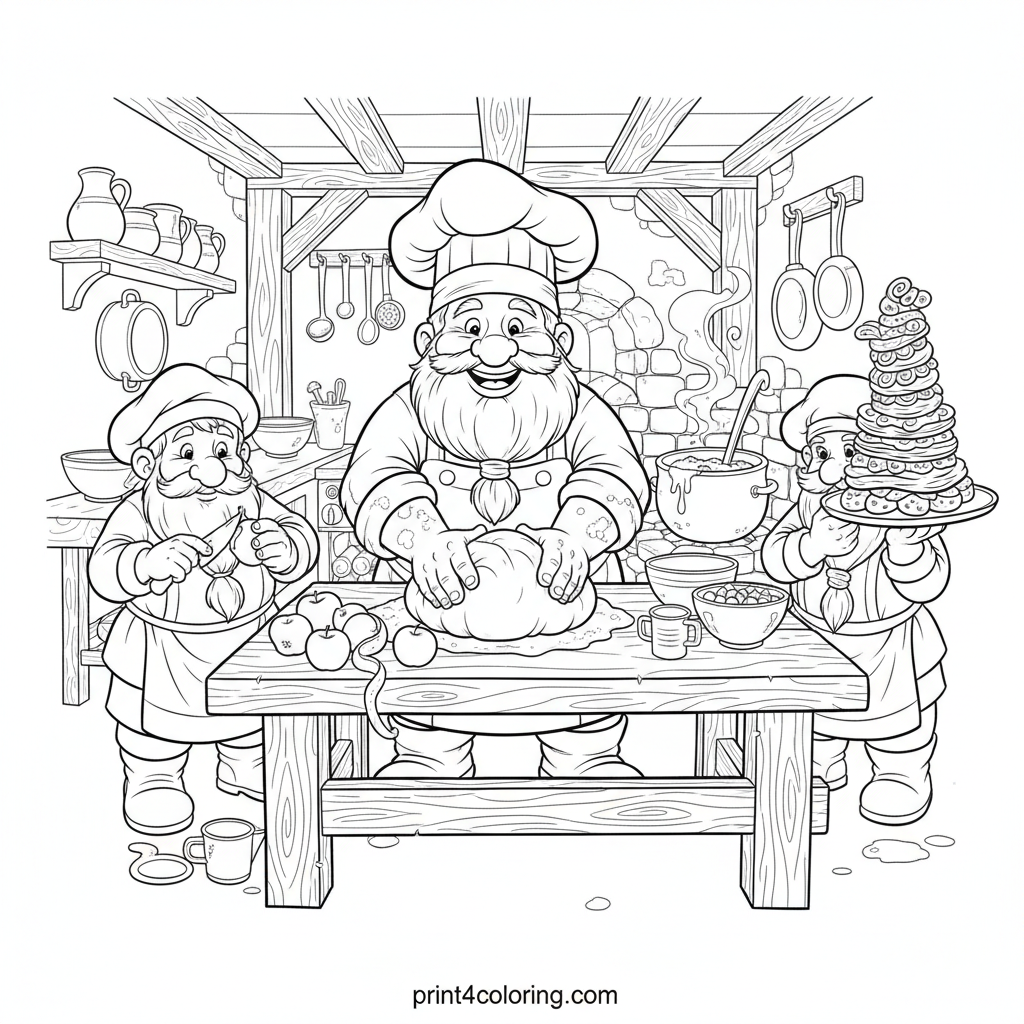 Whimsical Dwarf Bake-Off Extravaganza Coloring Page