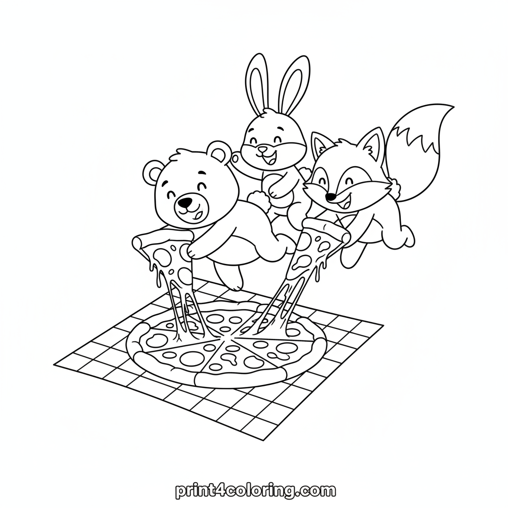 #animals#pizza#party#bear#bunny#fox#picnic#food#cute#fun#coloring-page#printable