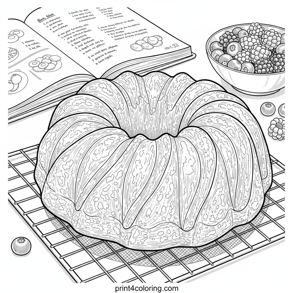 #baking#cake#bundt-cake#berries#kitchen#still-life#dessert#food#coloring-page#printable