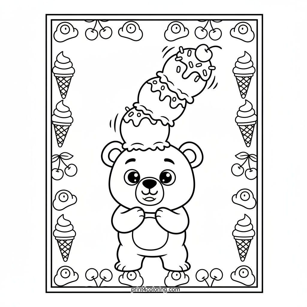 #bear#sundae#ice cream#dessert#food#funny#balance#cute#animal#coloring-page#printable