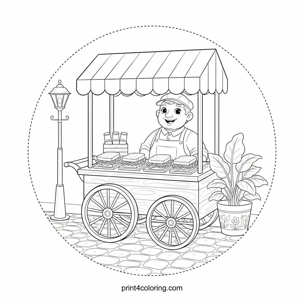Charming Vintage Sandwich Cart Scene Coloring Page