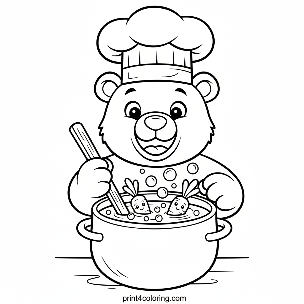 #bear#chef#cooking#soup#vegetables#kitchen#food#animals#coloring-page#printable