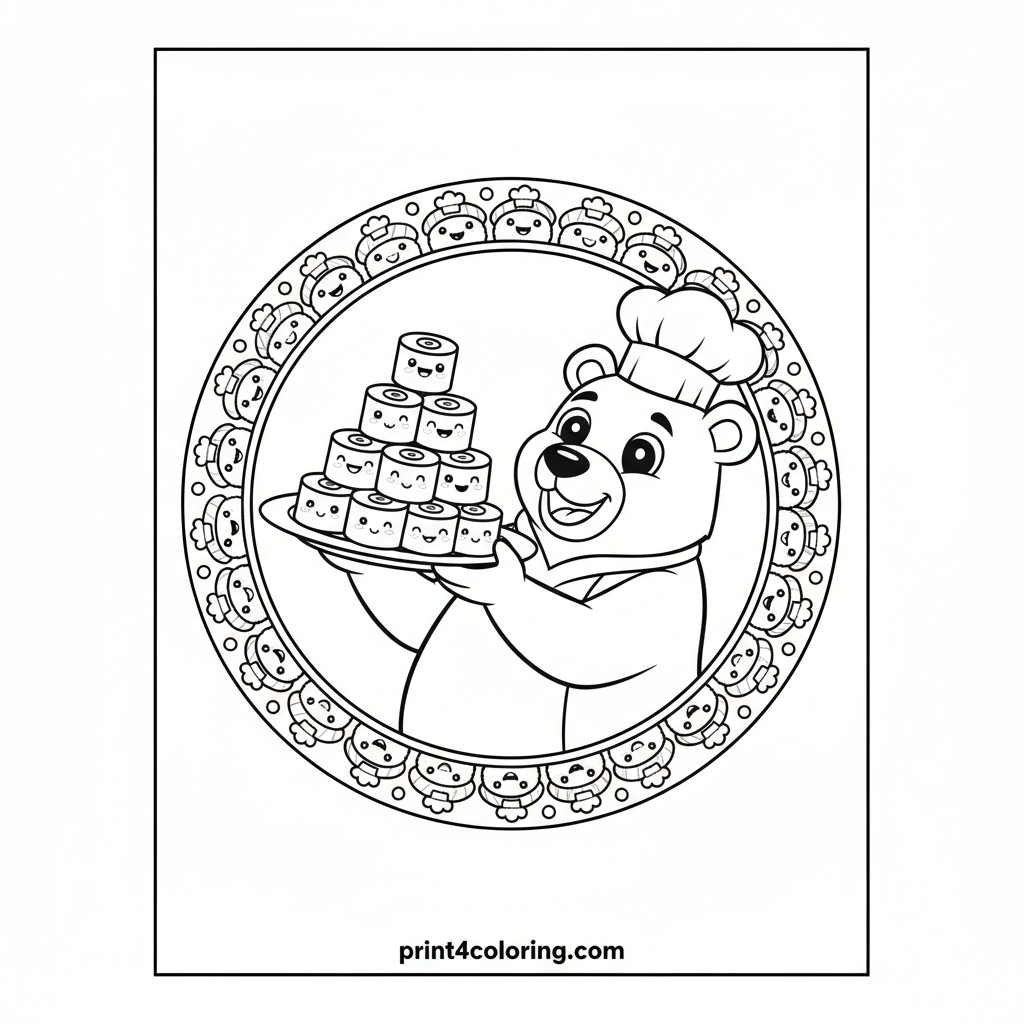 Chef Bear's Silly Sushi Tower Coloring Page