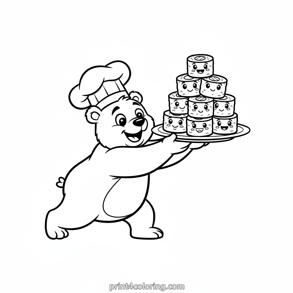 - 4🌈 **Background Fun** - Imagine a busy kitchen or a fancy restaurant behind Chef Bear. Add some simple patterns or a solid cheerful color to make the sushi stand out!