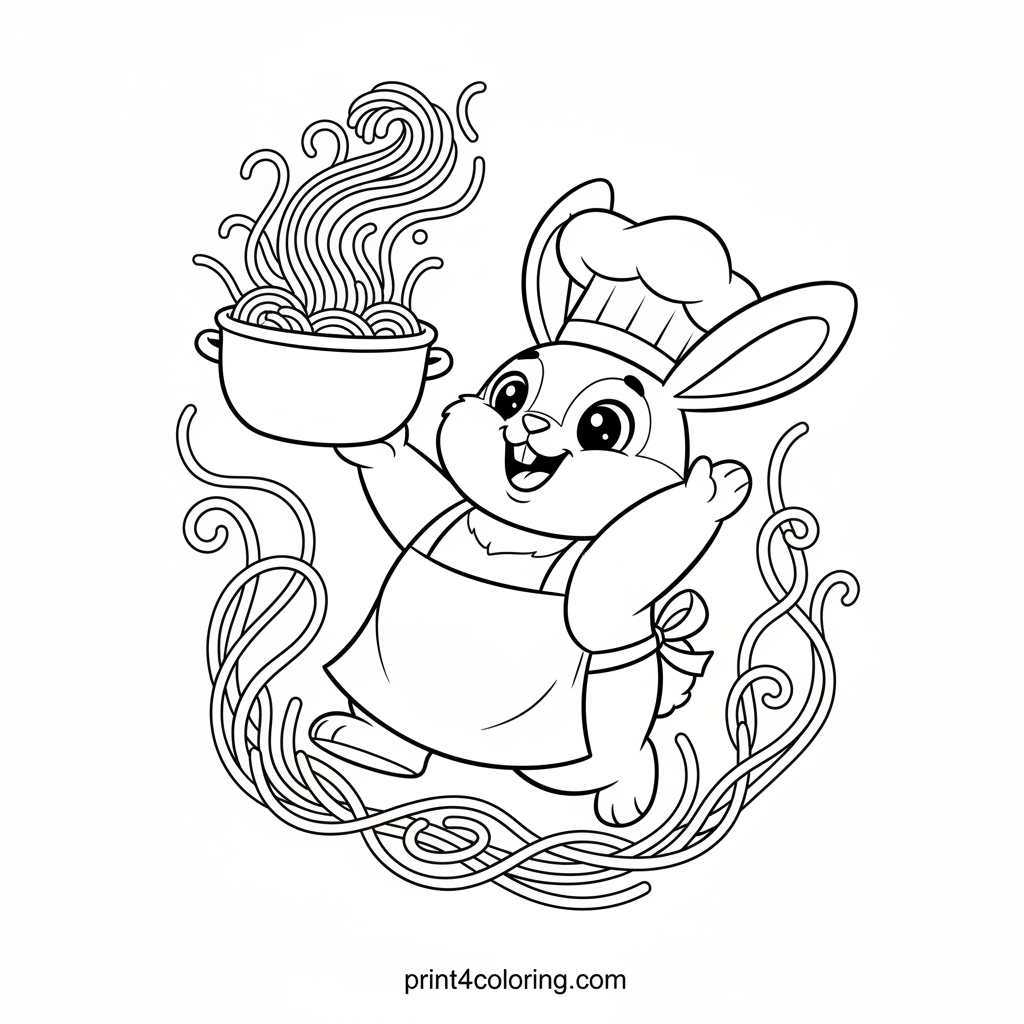 Chef Bunny's Delicious Pasta Toss Coloring Page